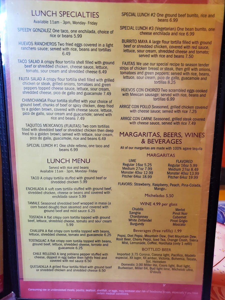For a filling meal, the Combination Dinners are a popular option. You can enjoy combos like One Taco, Two Enchiladas, and Rice ($8.99), or the delightful Two Beef Enchiladas, Rice, and Beans ($7.99). Other tasty combinations include One Taco, One Enchilada, and One Chalupa ($7.99), or Two Tacos, One Enchilada, and Chile Con Queso ($8.99).